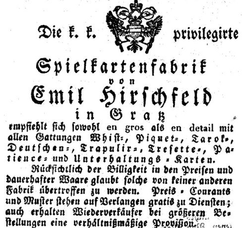 (beachtenswert sind die Tippfehler - waren die Kartenspiele Whist und Tresette in Klagenfurt nicht bekannt?)