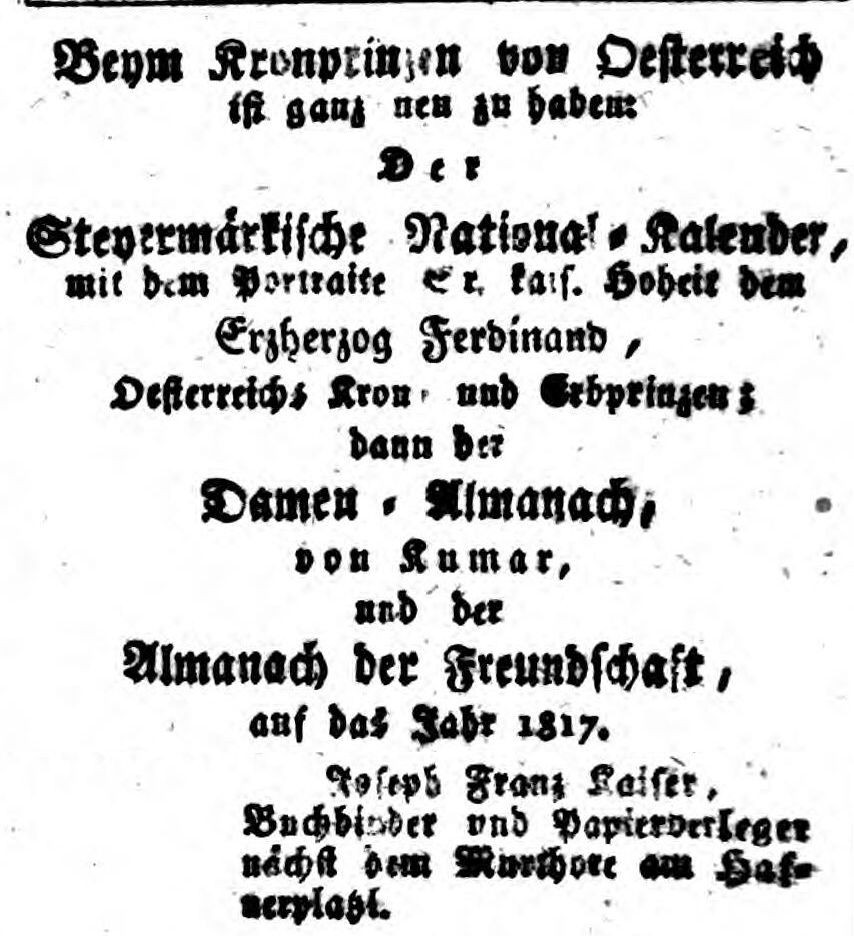 1845 (Jüngste mir bekannte Erwähnung von Joseph Franz Kaiser -