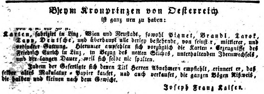 1726 (Warenangebot, man beachte die Kaiserischen lith. Spielkarten)