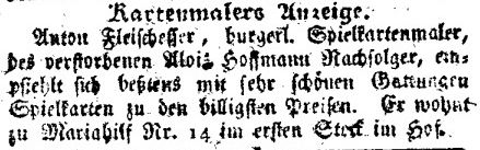 Anton Fleischesser, Zeitungsannonce zur Betriebseröffnung