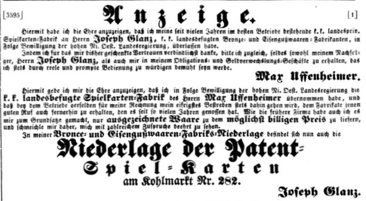 Joseph Glanz: Übernahme der Uffenheimer'schen Spielkartenfabrik